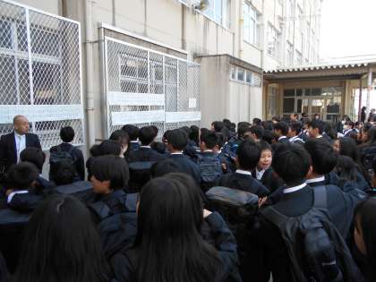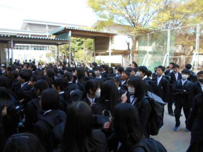 第47回入学式は、満開の桜のもと無事に終えることができました。新入生は登校して先ず、学級発表で自分のクラスを確認しました。新しい友達との出会いは、とても緊張しました。