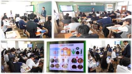 2年生の家庭科は、食生活の単元を学習しています。体育健康教室よりゲストティーチャーとして栄養教諭の先生をお招きしました。中学校給食の献立もしていただいている先生です。栄養2群を多く含む食品を紹介してもらい、献立を考える参考にしました。食事を考えることで、日常生活や健康について見直すことができたらいいですね。