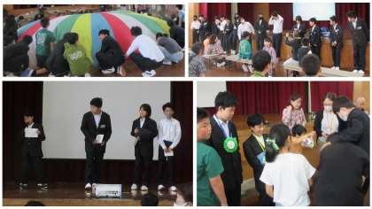 小学生も交えて、新1年生クイズやゲーム、プレゼント渡しなどをして新一年生の入学をみんなで祝いました。久しぶりに小学校の先生や小学生に会えて、みんな嬉しそうでした。