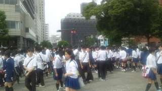 予定通り「山下公園」に到着しました。海が見える風景ってなんとも言えずいいですね。クラス写真と学年全体写真を撮ります。このあと「横浜中華街」を散策します。