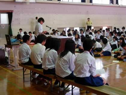 6名の発表者の内容は、高校野球をテレビで観戦して感動したこと、部活動で先輩がボールを顔面に受けても元気でプレーしているのを見て感動したこと、童話を読んでその内容に感動したこと、小さな女の子と姉のかかわりで感動したこと、戦争のニュースを見て戦争に関心を持ち、「硫黄島からの手紙」のDVDを見て考えたこと、家族の何気ない触れ合いの中で感動したことなど、それぞれが感動した事を素直な文章と表現力で発表してくれました。6人とも素晴らしい内容でした。