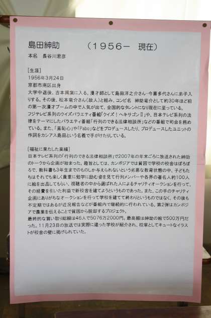 3組は「島田 紳助」さんを取り上げました。テレビ番組で「カンボジアに学校を建てよう!」という呼びかけを行い、有名人の方に絵を提供してもらい、オークションで5000万円以上の寄付を集めた社会貢献はすごいですね。