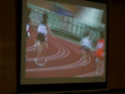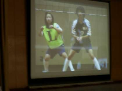 表彰の後、新人戦のビデオ鑑賞です。いつもながら、全部の 部活動の試合での頑張りをリズミカルな音楽とともに紹介してもらいました。自分や友人の姿が映るたび毎に、あちこちから歓声が上がっていました。係の先生方、いつもながらありがとうございました。