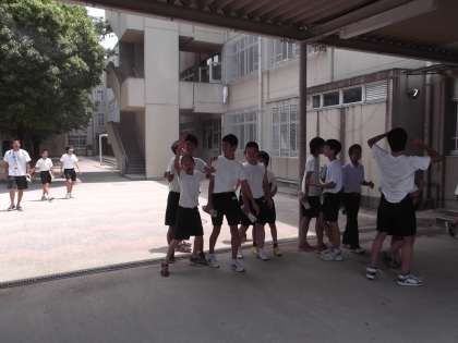 教育委員会並びに上下水道局のご協力を得て、本日ミストシャワーを設置しました。熱中症対策の一環で、冷水機の近くの渡り廊下に約8mにわたって設置しています。体育が終わったあとの生徒たちも気持ちよさそうにミストのシャワーを浴びていました。また、昨年、校長先生がとりくけまいした体育館入口のところのシャワーも稼動しています。ただ、熱中症対策には、日常の睡眠(休養)・栄養(食事)などの健康管理とこまめな水分補給(塩分も)が大切です。水分補給ものどが渇いてからでは遅く、朝食時や運動する前にしっかり摂ることが必要です。これからますます暑くなりますので、室内外問わず、熱中症対策にしっかり取り組んでください。