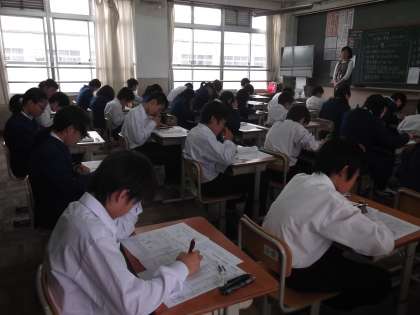 今年度1回目の定期考査がありました。特に,1年生にとっては,中学校での初めての定期考査になります。1年生から3年生まで,みんなとても真剣な表情でテストに取り組んでいました。明日もがんばりましょう。