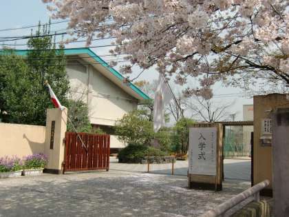 午後1時30分の開式を前に、主役の登場を待っている校門です。