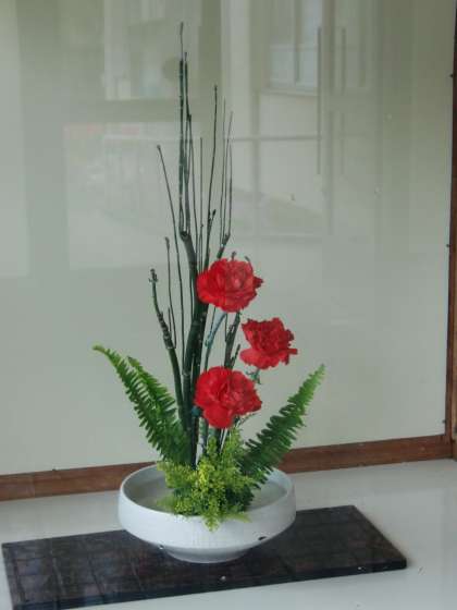 《今週の生け花》カーネーション,トクサ,ソリダコ,玉シダ 4月12日(月)〜