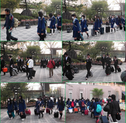4月16日(木)3年生が修学旅行に出発にました。笑顔で出発しました。18日(土)までの3日間,楽しい思い出に残る修学旅行になることでしょう。修学旅行の様子につきましては,このホームページでお知らせをしていきます。