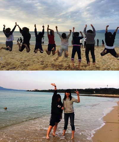 宿舎には予定通り到着しています。体調面も特に心配なこともなく,元気に過ごしています。ホテルでは,ビーチで楽しんだ入りして,夕食もしっかり食べていました。
