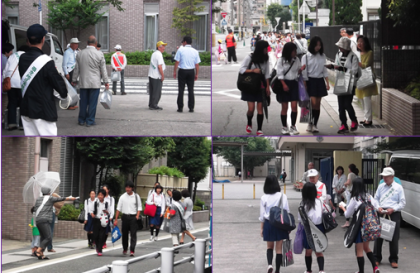 7月7日(火)朝8時頃から「第65回社会を明るくする運動」の一環で、地域の自治連合会や保護司会の方々や小中学校の校長先生方が校門付近や通学路でティッシュを配ってくださいました。「おはよう」や「ティッシュもらったか?」と優しく声をかけていただき、生徒たちも「おはようございます」と元気な声であいさつをしていました。