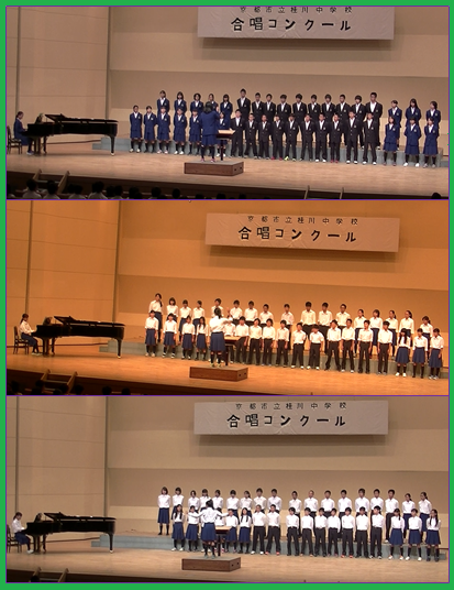 10月8日(木)に長岡記念文化会館で合唱コンクールを行いました。 1年生の各クラスの様子です。どのクラスもやる気に満ち溢れた雰囲気の中,素晴らしい合唱,そして,素晴らしい態度で行うことができました。