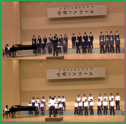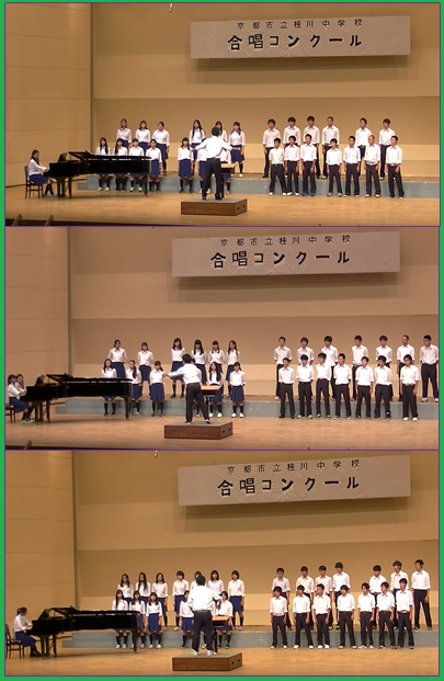 10月8日(木)に長岡記念文化会館で合唱コンクールを行いました。3年生の各クラスの様子です。桂川中学校での最後の合唱コンクール,どのクラスもやる気に満ち溢れた雰囲気の中,素晴らしい合唱,そして,素晴らしい態度で行うことができました。