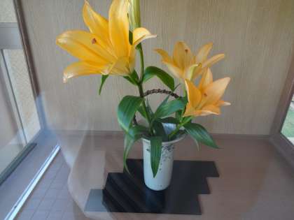 約2週間ごとに、地域の方がボランティアで、玄関ホールのガラスケース生けていただいています。