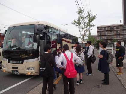 6時00分の桂川中学校集合を終え、予定通り6時30分にはバスに乗車し出発しました。梅雨入りしている沖縄ですが、今日は曇りの予報です。いい思い出がつくれる修学旅行になってほしいと思います。
