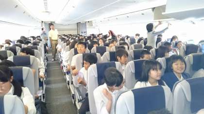 那覇到着は10時55分です。きっと離陸時は、盛り上がっていた生徒がいたり、緊張がピークに達して固まっているた生徒もいたのではないかと思います。