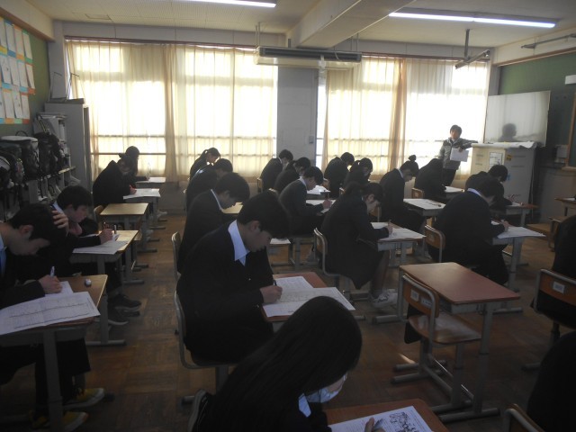 本日から3年生が中学校生活最後となる「総括テスト」に臨んでいます。受験勉強も並行しながらのテストになりますが、どの生徒も静かな緊張感の中で集中し、諦めずに問題に向き合っています。卒業まで残りわずかとなりましたが、一つひとつの行事や学びに全力で取り組む3年生の姿は、本当に印象的です。これからの時間も、仲間とともに大切に過ごしてほしいと願っています。