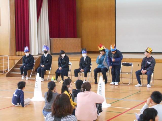 本日、1組「小中合同 卒業を祝う会」に参加しました。小学生・中学生が一緒になって、卒業を迎える友だちの門出を心から祝いました。会の中では、思い出を振り返るメッセージ発表など、学年をこえて楽しめる内容が盛り込まれ、子どもたちは終始笑顔で温かい時間を過ごしていました。