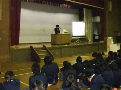 集会の中で生徒会よりアピールがありました。生徒会では『書き損じハガキ回収キャンペーン』を行います。アジアの学校に通えない子どもたちのために,年賀状などで書き間違えて使えなくなったものがあれば,学校まで持ってきてください。ご協力をよろしくお願いします。