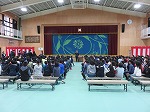 明日の入学式に向け,新入生に事前登校してもらい,入学式のリハーサルを実施しています。