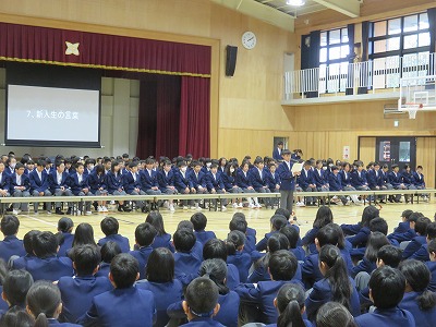 1年生は,先輩から伝えられる部活動・委員会活動・学校行事について真剣な表情で聴いていました。