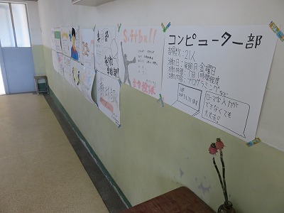 先輩が作成した部活動ポスターが校内に貼られています。