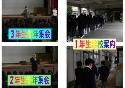 今日は午前中に,学級写真の撮影や,1年生は学校案内,2・3年生は学年集会などを行いました。