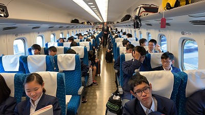 少し早い昼食を車内でとり,美化委員が車内の美化点検をしてくれました。