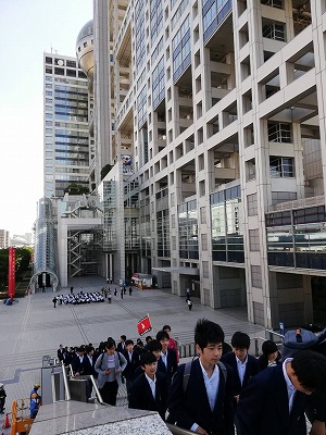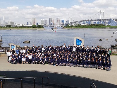 ホテルからお台場に移動し,学年全体で記念写真を撮りました。