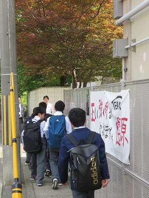 2年生はチャレンジ体験最終日,3年生は登校時間が遅く,1年生のみの登校風景です。