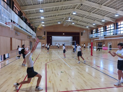 3年生の体育は,体育館でバレーボールに取り組みました。