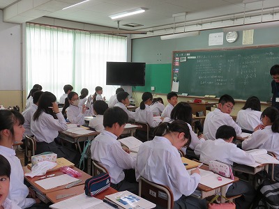 1年5組は数学,1年6組は理科,1年7組は英語の授業を行っています。