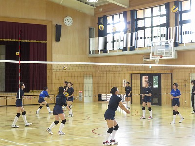 体育館では女子バレー部が大きな声を出して,活動をしていました。
