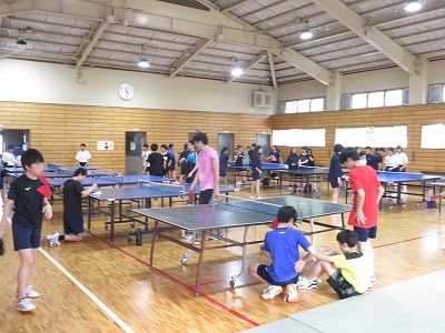 格技室では,卓球部と柔道部が場所を譲り合いながら,活動をしていました。