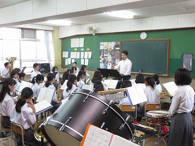 南校舎の3階から美しい音楽が聴こえてきたので,吹奏楽部の練習のようすを見に行きました。