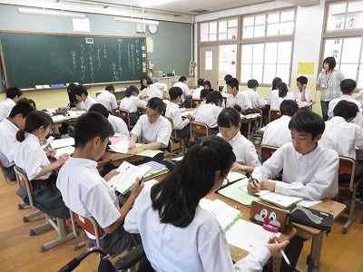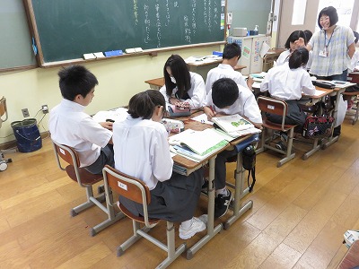 1年2組の国語の授業は,「ダイコンは大きな根」を音読し,「筆者が伝えたいこと」「はじめて知ったこと」を各自でまとめ後,グループで学びを深めました。