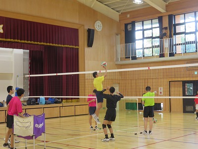 放課後,体育館では男子バレー部とバスケットボール部が練習に励んでいました。