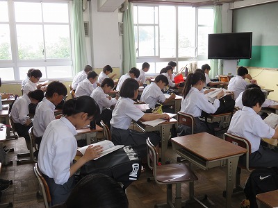1時間目のテストを前に,最後の確認に勤しむ姿がありました。