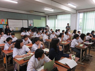 写真は1年5組の授業のようすです。