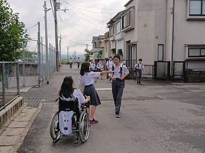 また,その時間に1組の仲間は,合同球技大会参加のため,島津アリーナ(府立体育館)に向けて出発しました。