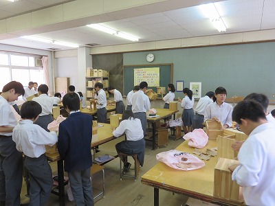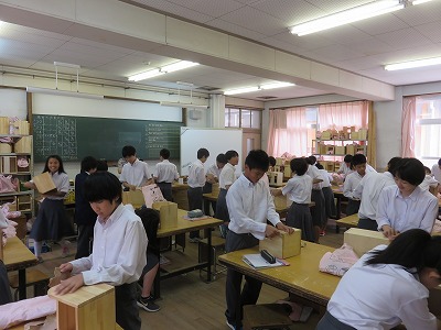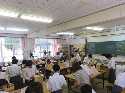 2年4組の技術では,木工作品の仕上げ(塗装)を行いました。