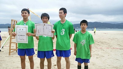 バレーボール協会主催のビーチバレーボール大会で優勝し,全国大会に出場が決まりました。