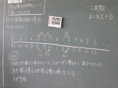 2年4組の数学は,一次関数の値の変化について学びを深めました。