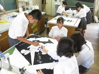 1年生の学級旗づくりのようすです。完成も近いようです。