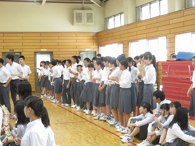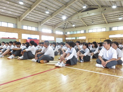 3年生の学年集会は,はじめに学年レクを行いました。その後夏休みの学習と生活について,先生から話がありました。