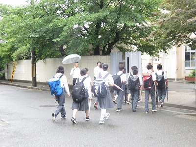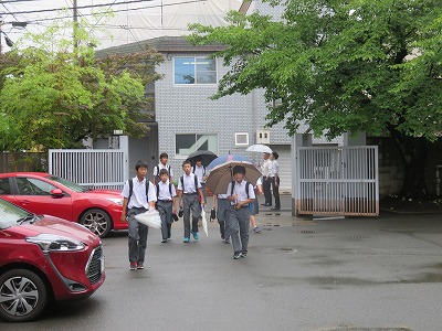 教室,学校を美しくして,夏休みを迎えてほしいため,しっかり掃除の時間を確保しています。ただ,雨が降っていろいろなところが濡れています。安全に注意して掃除に取り組むように連絡します。