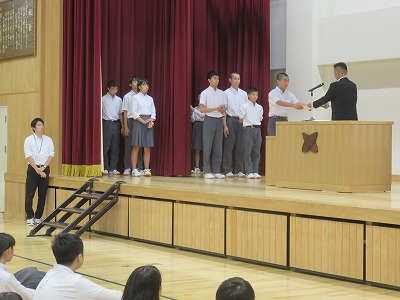 また,1学期部活動や生徒会活動で頑張ってくれた人・チームへの表彰を行いました。