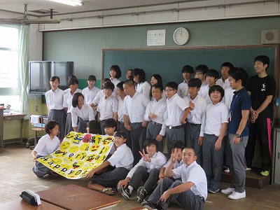 完成した学級旗と記念撮影をする学級がありました。