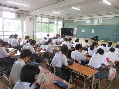 つづいて,1年5組〜7組までの朝読書のようすです。