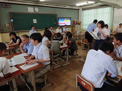 研究授業を終え,授業について検討する時間(協議会)を持っています。
