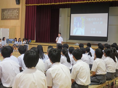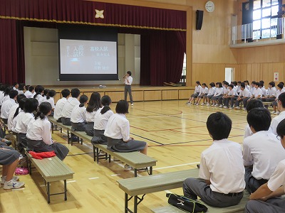 3年生は,6限体育館でビブリオバトル学年大会を行いました。